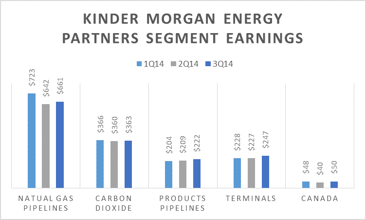 Here we see that all five of Kinder Morgan Energy Partners' segments delivered earnings growth over the prior quarter: