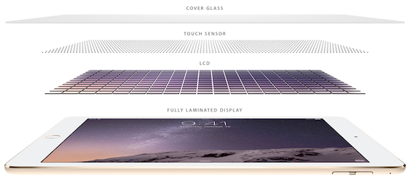 The iPad Air 2 follows Apple's never-ending pursuit of thinness, with this model coming in 18% thinner, at 6.1 mm. The display is now optically bonded and laminated, eliminating a small air gap and reducing internal reflection. There's also a new anti-reflective coating on top.