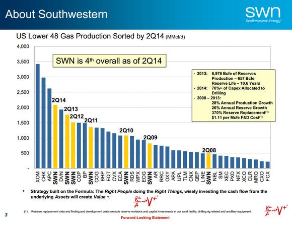 As the following slide shows, Southwestern Energy has quietly become the fourth-largest natural gas producer in the lower 48 states.