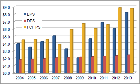 However, in truth, dividends are paid out of free cash flow (as the chart shows), and the company has proven it's able to convert earnings into free cash flow at a good rate.