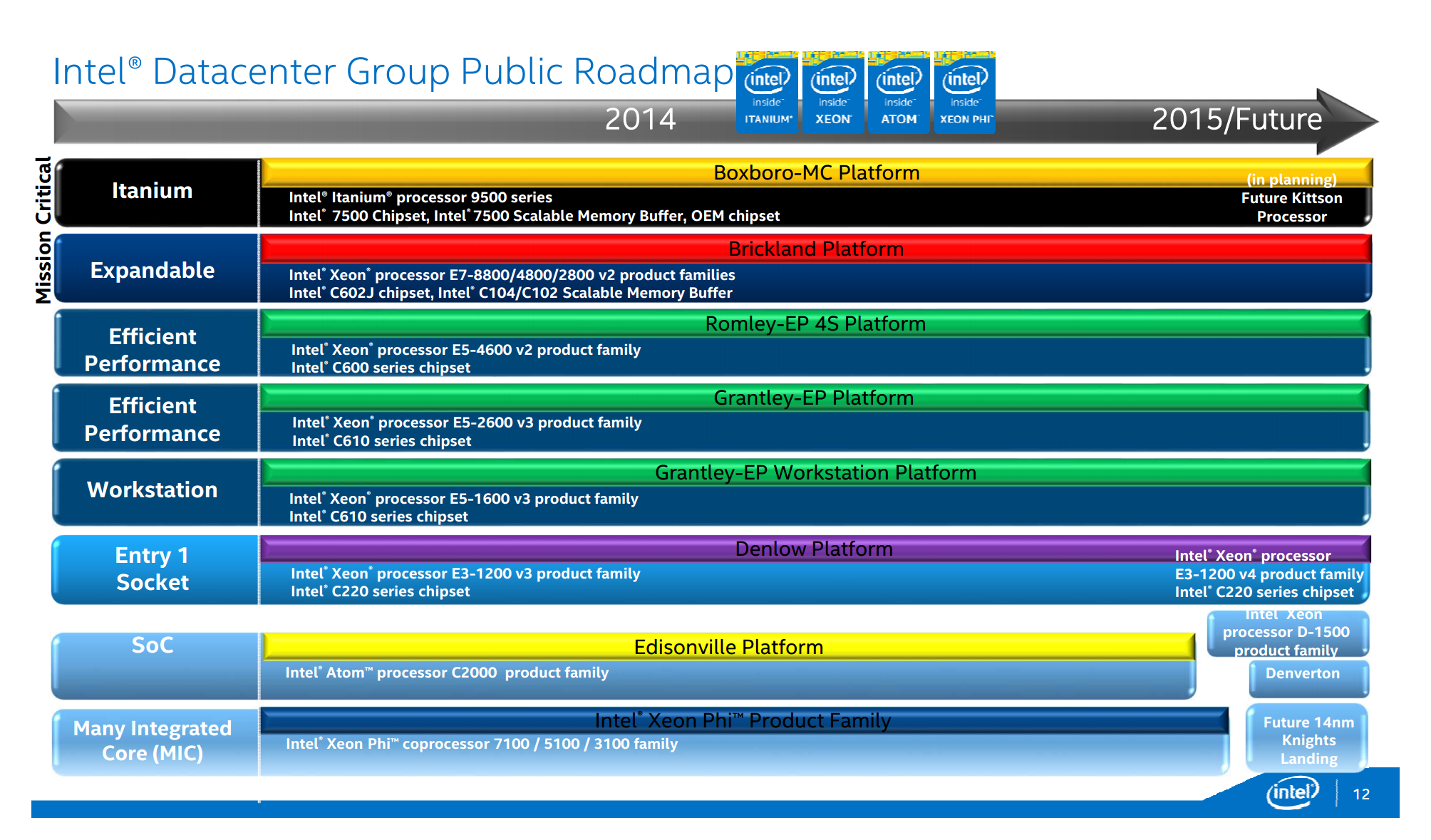 Reprinted below is Intel's datacenter group public road map: