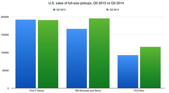 As you can see from this chart, sales of Ford's F-Series line were actually down slightly in the third quarter, while both GM and Fiat Chrysler made significant year-over-year gains.