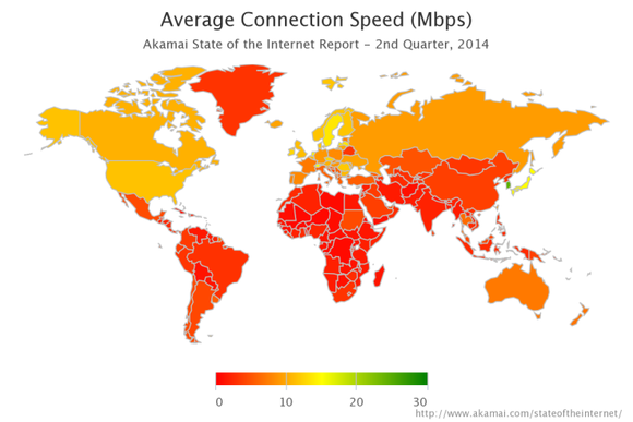 A look at Internet connectivity around the globe. Source: Akamai Technologies via TechCrunch.