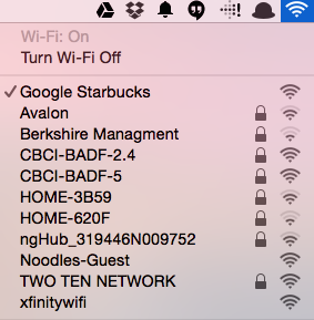 Connecting to "Google Starbucks" for a bit of off-site writing.