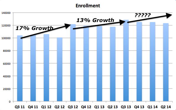 There's no metric more crucial to understanding the underlying business than enrollment. As you might expect, enrollment usually gets a noticeable bump during the third quarter — when back-to-school season is in full swing — and trends downward over time as attrition sets in.