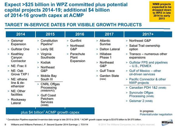 As this slide shows, Williams Companies and Williams Partners has $29 billion in planned and likely projects scheduled to be completed over the next five years. Meanwhile, Kinder Morgan just announced that it's grown its project backlog by 5.3% to $17.9 billion in just the last quarter alone (a 22.9% annualized rate).