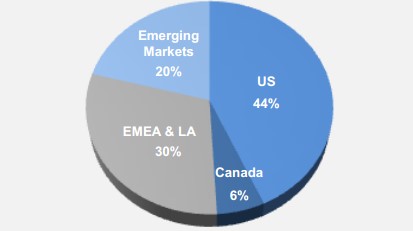SunEdison Inc may be firmly entrenched in the solar market, but it's spreading its assets and investments across scales and countries to reduce risk. Of the 3,400 MW project pipeline SunEdison had in February, only 50% of that was located in the United States or Canada. Europe, the Middle East, and Africa took 30% of the project pie, with emerging markets accounting for a sizable 20%.
