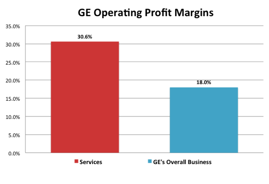 The following chart shows how much more profitable services are for General Electric relative to the operating margins of the company as a whole: