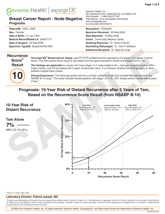 Genomic Health's Oncotype DX DCIS Score was validated a few years ago, but new data from a larger set of 1,200 tumor samples confirmed and extended the tests' ability to predict the risk of local recurrence was completed in June. We'll get to see the full data when it's presented at a scientific meeting in December, but the top-line result may be enough to increase its use already.