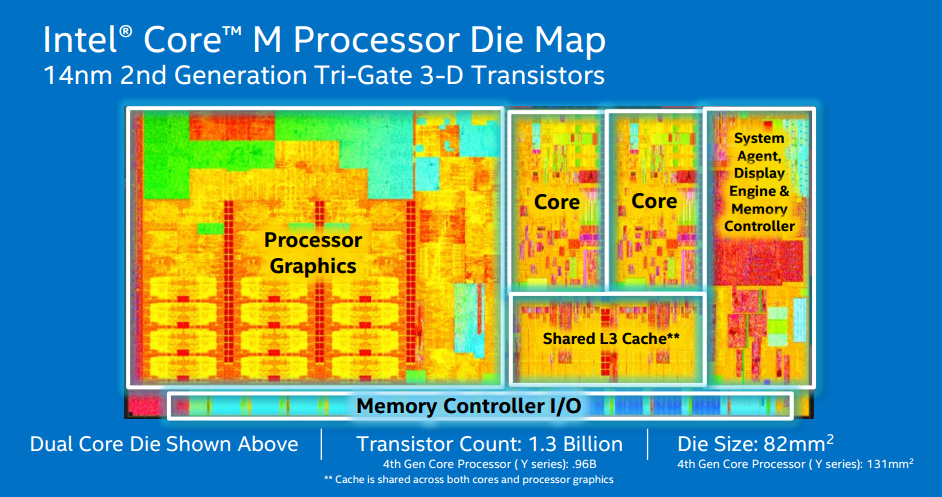 It is well known that Intel's (INTC 1.07%) integrated graphics designs haven't generally been considered "best in class." However, Intel has been significantly improving its graphics architectures and dedicating more space in its chips for graphics. Indeed, a quick look at a picture of Intel's latest Core M shows that the majority of the chip is graphics.