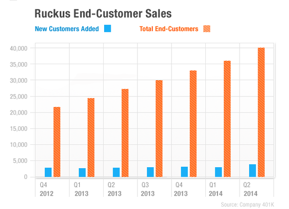 So is Lo's strategy working? Well, judging from Ruckus's sales and growth in end-customers, it's clear the company is doing something right: