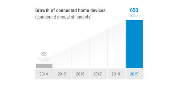 Business Insider forecasts 60%-plus compound annual growth for shipments of connected home devices over the coming five years. There's going to be a lot of data moving around in the future, and we need to be prepared to handle it: