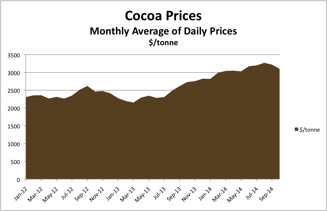 The price of cocoa gives no indication of melting anytime soon. Data: International Cocoa Organization.