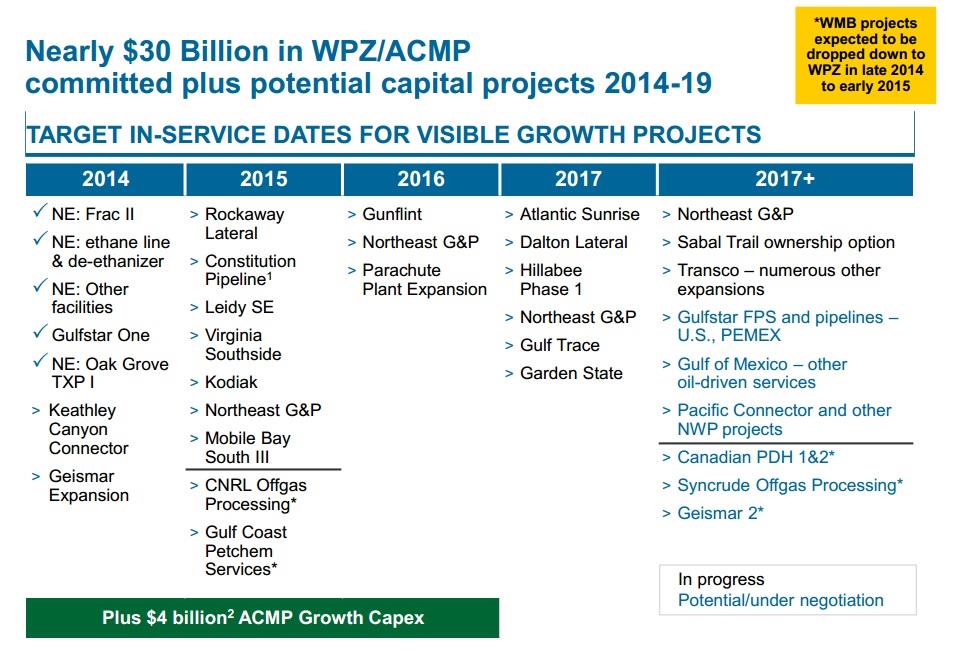 As I recently explained in an article covering the earnings of Williams Partners' general partner, Williams Companies, Williams' management has an imperfect track record of completing projects on schedule. For example, the Access Midstream/Williams Partners merger was supposed to be complete by the end of the third quarter of 2014, but it's now scheduled for Q1 of 2015. Also, the restart of the expanded Geismar facility was initially set for April of 2014, then pushed back to June, and now expected in November.