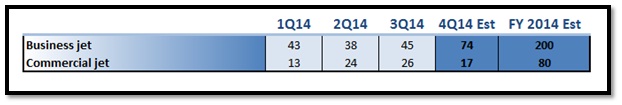Historically, Bombardier has posted strong fourth quarters, so it's expected that deliveries will be higher in the period. Hence, there are chances that cash inflows will improve further and help generate free cash flow. Bombardier has maintained its delivery target for fiscal 2014 and expects to deliver 200 business jets and 80 commercial planes.