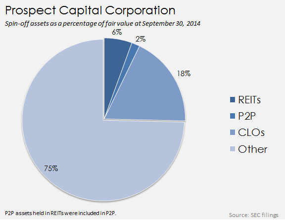First, John Barry let it slip that the spinoff might be done via a rights offering, in which shares of the spun-off companies are effectively sold to existing Prospect Capital shareholders. This would have the effect of raising new capital and spinning out assets, two goals Prospect Capital stated in its press release. It would also raise new sources of fee income for the external manager, assuming the spinoffs are managed by Prospect Capital Management.