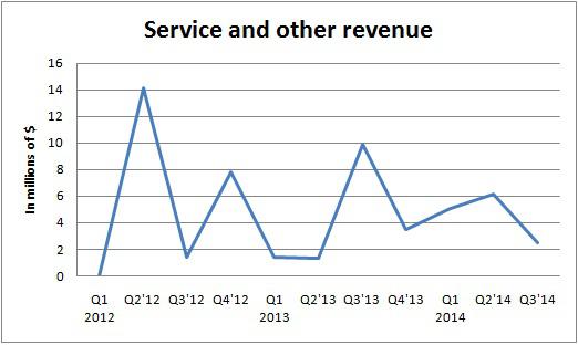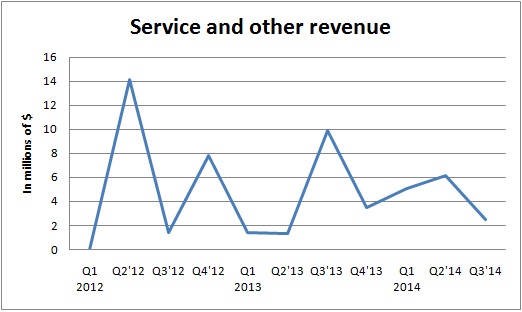 A quick glance over the past ten quarters shows how volatile Westport's service revenue can be.