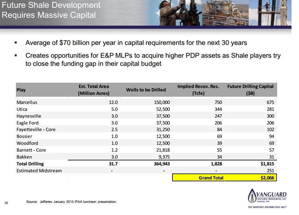 Meanwhile, Vanguard recently acquired over $900 million of low cost, low decline gas fields in Colorado, Texas, and Louisiana, which will increase its production by 27% at minimal cost and are immediately accretive to distributable cash flow.