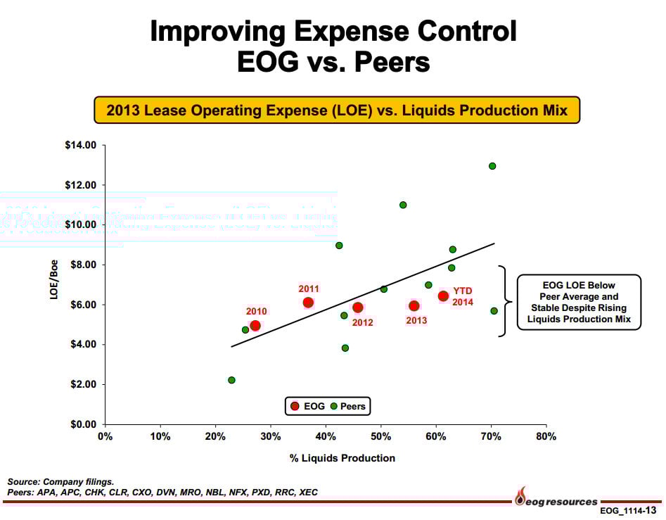 And finally, EOG is focused on returns, and our large high-quality drilling portfolio still generates exceptional returns with $80 oil. With best-in-class horizontal crude oil assets and a strong balance sheet, EOG will continue to be a leader in absolute organic US crude oil production growth in 2015 and beyond.