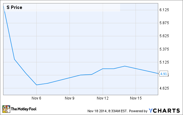 Sprint's drop started when the company released its fiscal second quarter earnings at the beginning of the month. The company missed Wall Street's already low expectations, and in after-hours trading the stock was down 7% and hasn't turned around since.