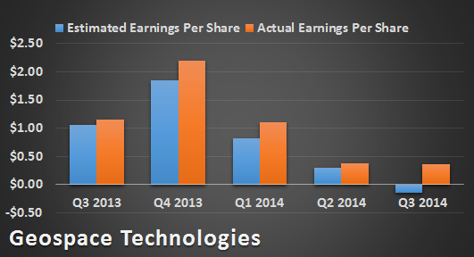 Over the entire fiscal year, though, the company ended in the black with earnings per share coming in at $2.81 per share. It's not as attractive as fiscal 2013's result of $5.38 per share, but considering the scale-back in capital spending from Geospace's clients, it's a small consolation prize to remain profitable for the entire year.