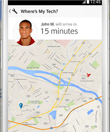 The app notifies customers about 30 minutes before a technician will arrive at their home.