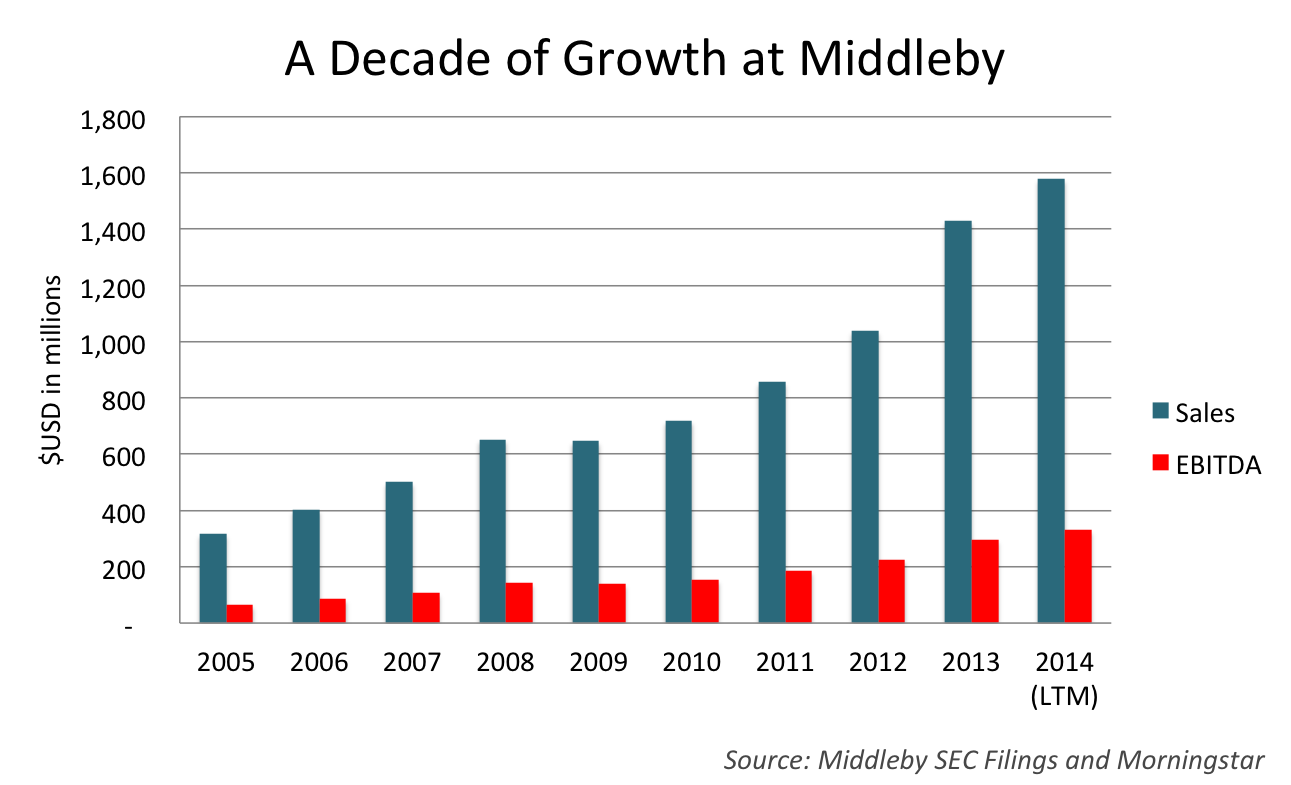 He has a simple recipe for success at Middleby: Gobble up smaller kitchen manufacturers, wring out the costs, and scale the business across the international restaurant industry. It's worked well thus far, allowing Middleby to complement organic growth with strategic purchases to bolster sales, while keeping close tabs on how these investments can boost the bottom line, too.