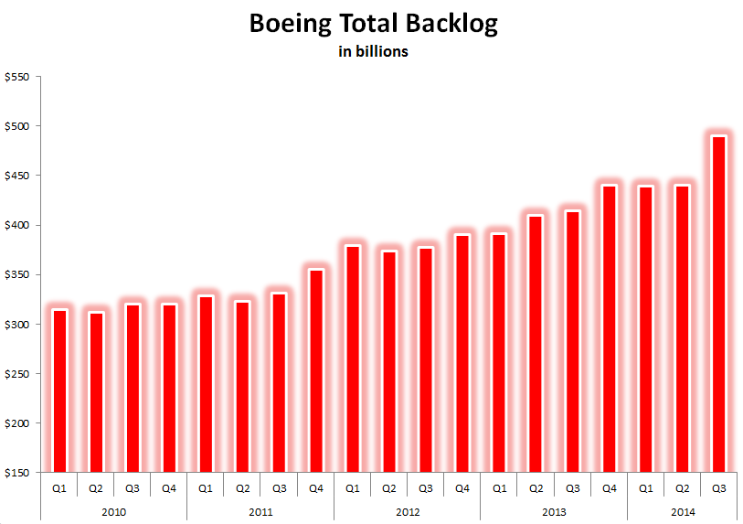 Daniel Miller: If you're looking for a future-proof stock, very few companies can offer you as much cushion for uncertain times as Boeing (BA 1.00%) does. The aviation giant boasts a total order backlog, filled with both commercial airplanes and defense products, of $490 billion at the end of the third quarter. Put another way, that's equal to roughly five years' worth of revenue for Boeing. As you can see below, the backlog continues to hit record highs.
