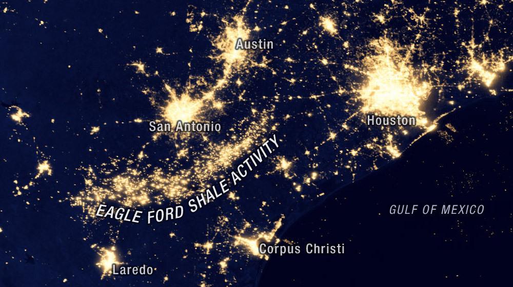 Here's an image from 2013 showing the Eagle Ford shale in Texas compared to some of the state's major cities.