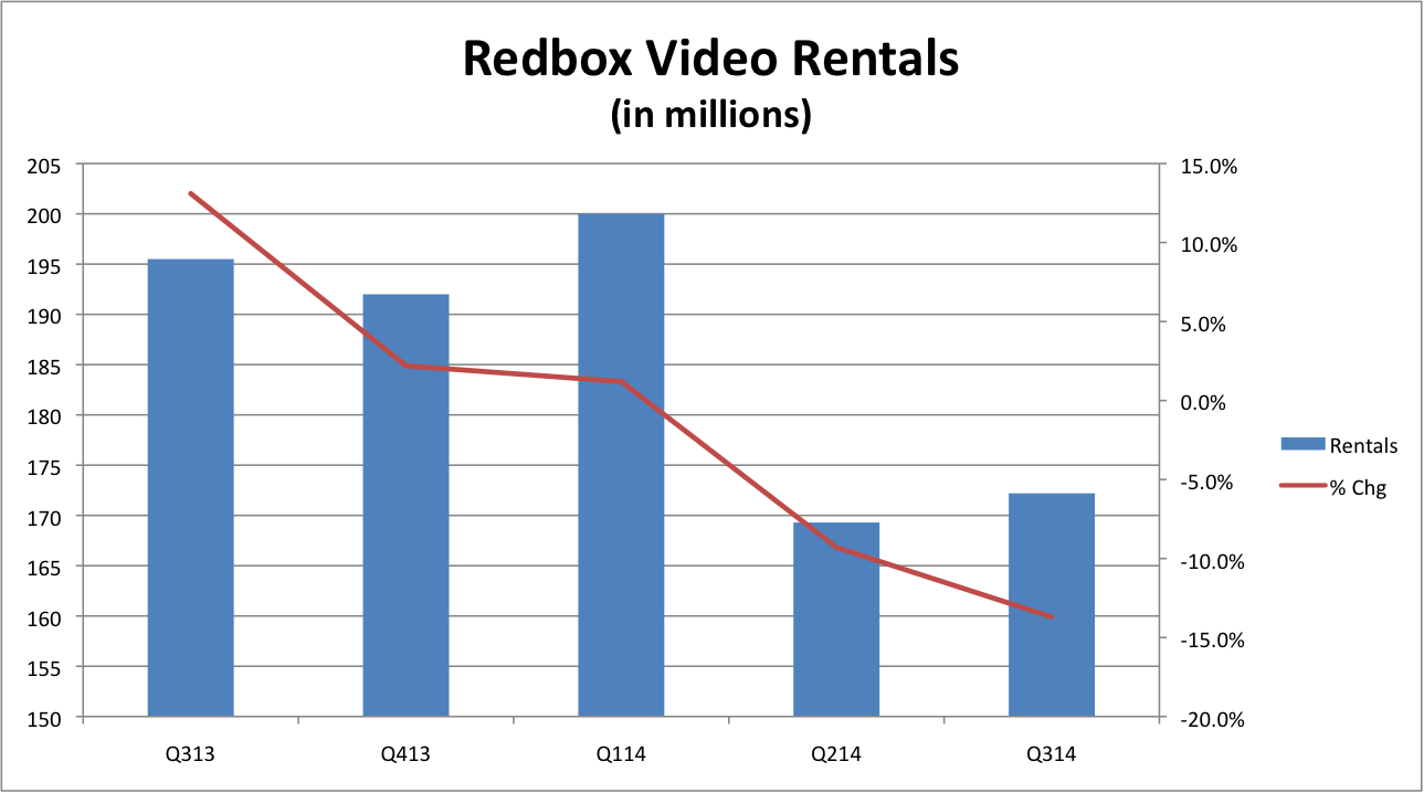 In the third quarter, only 172.2 million units were rented, down 13.7% from the year ago period. It's not only a significant drop by itself, but actually represents an acceleration of the decline.