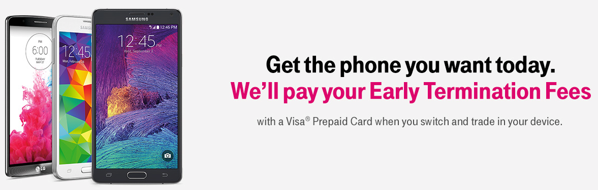 T-Mobile continues its offer to pay early termination fees to customers switching from other major national U.S. carriers. Image source: T-Mobile.