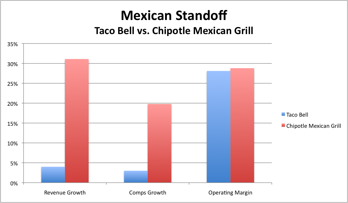 Taco Bell finds itself up against a tough competitor in Chipotle Mexican Grill. Data: Company third quarter SEC filings.