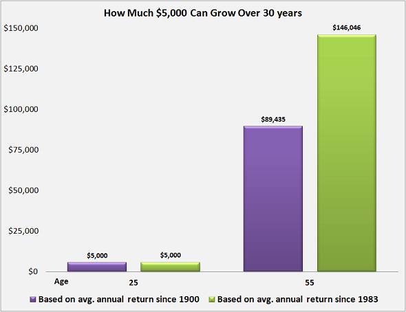 Based on actual past 30 year average returns of S&P 500, $5,000 per year invested