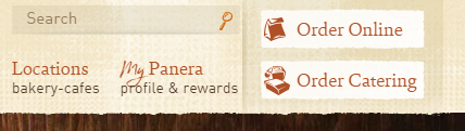 Evidence of Panera's technology investments, from a detail of the company's website banner: loyalty program, online ordering, and Large-Order Delivery (catering). Source: Panera Bread Company.