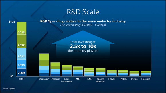 Intel's manufacturing expertise and research and development spending could give the company a significant advantage over competing chip makers in coming years, particularly as holding to Moore's Law, scaling looks to become more difficult and resource-intensive.