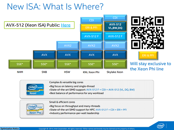 This is a dead giveaway that Skylake Xeon will include a more fully featured instruction set than the plain PC-oriented Skylake parts.