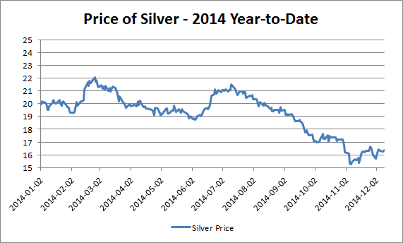 Why did the price of silver in 2014 fall again?