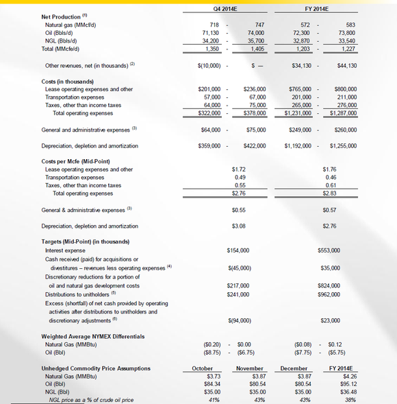 - Management doesn't change its drilling program to reduce oil exposure, its FY 2014 guidance looks the same in 2015, and hits the high side of guidance. This will impact the company the most in terms of selling cheap oil.