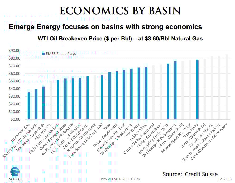 An example of these breakeven points can be found on the slide below, which I pulled from an Emerge Energy Services L.P. (NYSE: EMES) investor presentation.