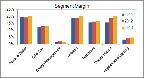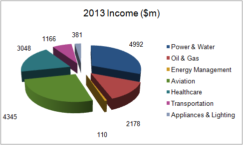 On a segmental margin basis, it's clear that power and water, aviation, healthcare, and transportation are GE's most profitable segments. However, a look at segmental income for 2013 shows that transportation only made up about 7% of industrial income -- it's not a major segment. For reference, the company also has a finance arm that generates around a third of total income.