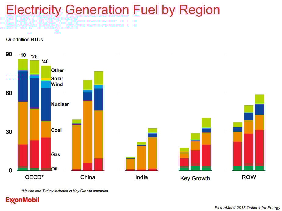 ExxonMobil (XOM +3.59%) recently updated its energy outlook through 2040. That outlook suggests that energy demand will grow by an average of 1% per year. The biggest driver of new energy demand is expected to come from electric power generation, which would suggest a bright future for coal as it's a key fuel source for power plants. However, that's simply not expected to be the case as coal is not only expected to be unseated as the world's number two fuel source by natural gas, but will endure anemic growth in the years ahead as we see in the slide below.
