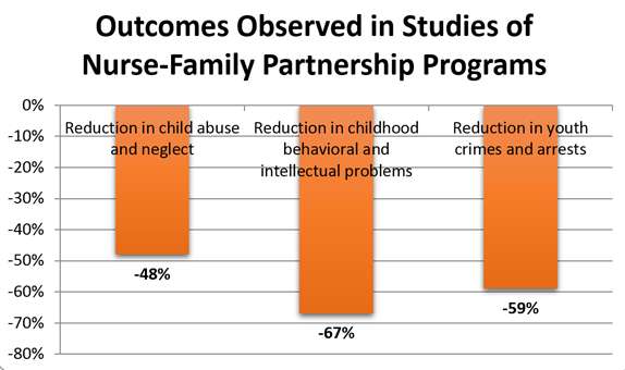 - 48% reduction in child abuse and neglect: The support and knowledge of nurses help mothers and children avoid the worst outcomes.