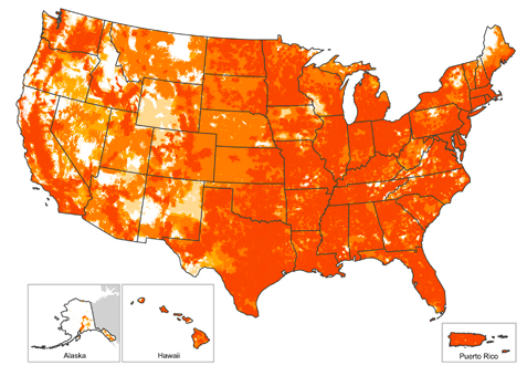 Verizon uses some of its current AWS spectrum for its XLTE network. Source: Verizon.