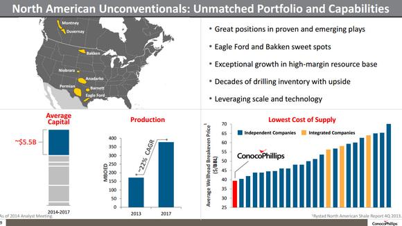 The following two slides illustrate the company's low cost of supply. The first slide shows that ConocoPhillips holds the lowest cost of supply in the entire U.S. shale space, with a breakeven price of less than $40 per barrel.