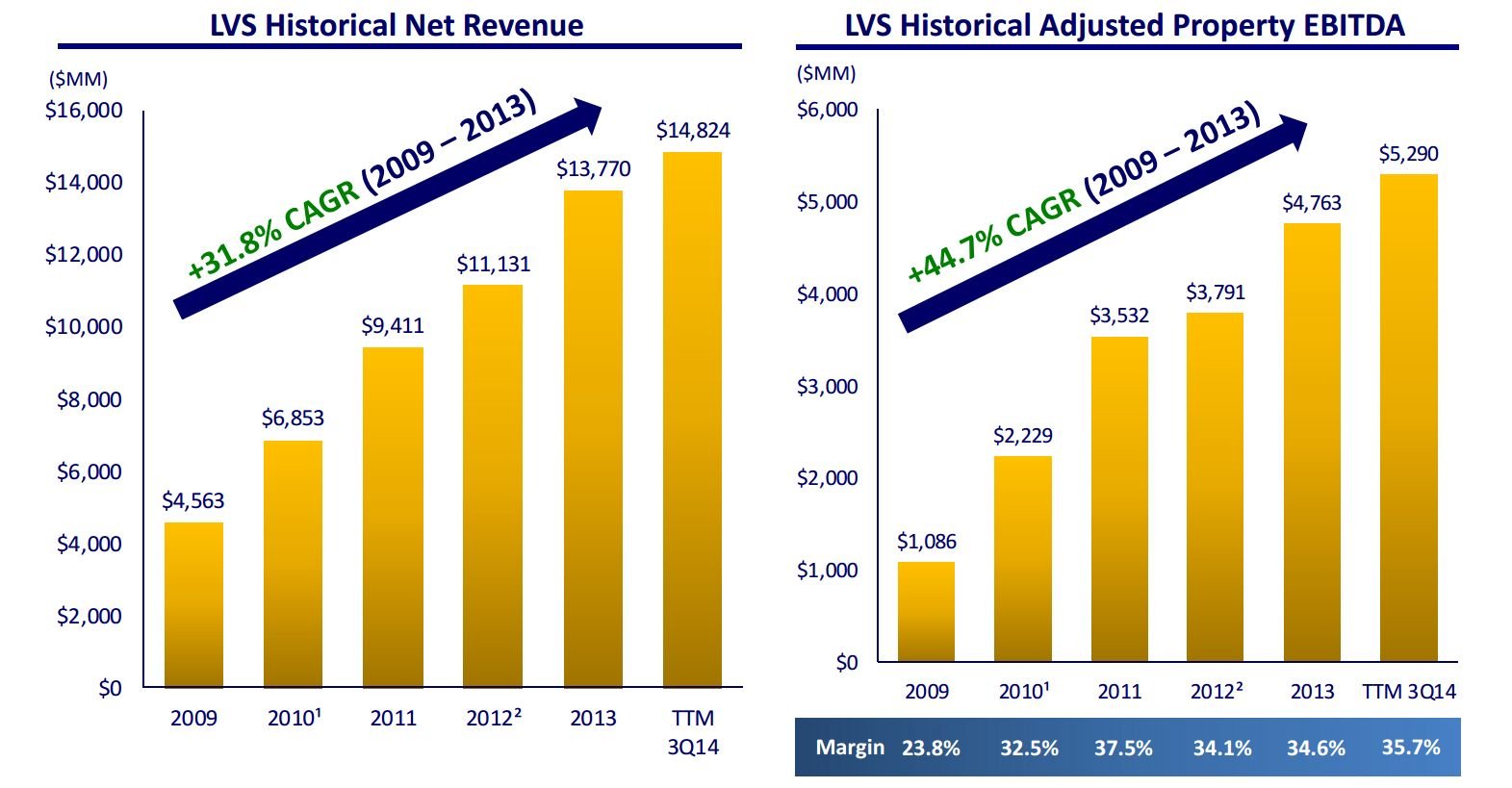 Las Vegas Sands has delivered rock-solid financial performance over the years, and the 2014 numbers are not that bad when considering the circumstances. The company's fundamentals are as sound as ever, so once external conditions improve, Las Vegas Sands should continue producing rapidly growing sales and earnings for investors.