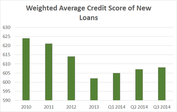 As Conn's loosened its lending standards, this percentage should have been growing in order to compensate for the additional risk Conn's was taking. This is what happened in 2011, when the average credit score of new loans dipped by a few points. But 2012 and 2013 were a completely different story: