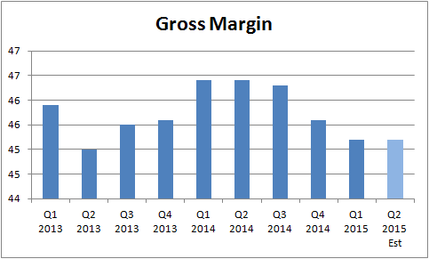 Revenue and guidance came in lower than investment analysts had predicted, and second-quarter EPS guidance is shy of analyst expectations as well. However, the midpoint of second-quarter revenue guidance is above the $721.2 million forecast by Wall Street. So, revenue OK, but earnings not as strong as expected. Let's look at what's going on with margin.