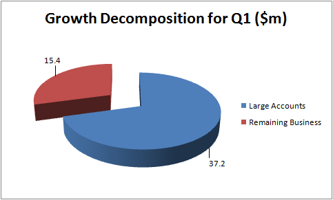 For example, first-quarter revenue grew by $52.6 million from the same period last year, with the split in the growth contribution as follows: