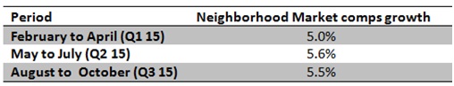 Wal-Mart has posted some strong Neighborhood Market comps in the fiscal year, suggesting its strategy against the increasing encroachment of smaller dollar stores is working. By the third quarter, this strategy improved U.S. comps 0.5% over the prior year period. The retailer plans to open 200 narrow-format stores during the current fiscal year.