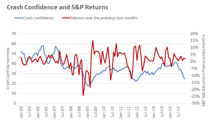 If you plot the Crash Confidence Index next to what stocks did in the previous two months, you kind of see what's going on here.